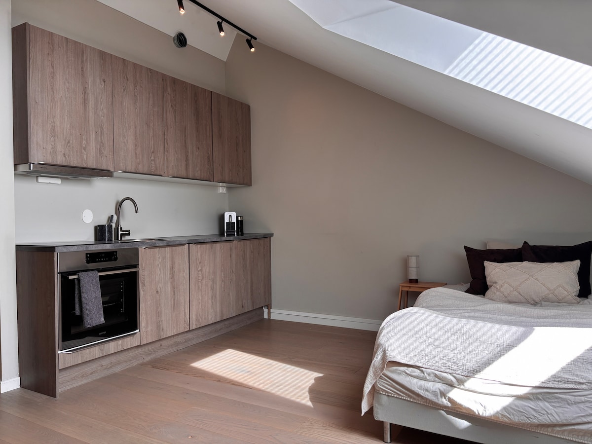A cosy loft apartment, 40 m2, in one of the best parts of the citycenter, right in the hearth of Oslo - with the very best seawiew and sunsets right from your sofa. Short walking distanse to the Oslo sentral station, Royal Castle, Opera and harbour- area. Here you find the very best restaurants, shopping area, clubs&bars. The flat is in the seventh floor , with french balcony. Wonderful sunsets. Roof terrasse with 360 degrees view . Elevator in the building. Coffeshop in the first floor..