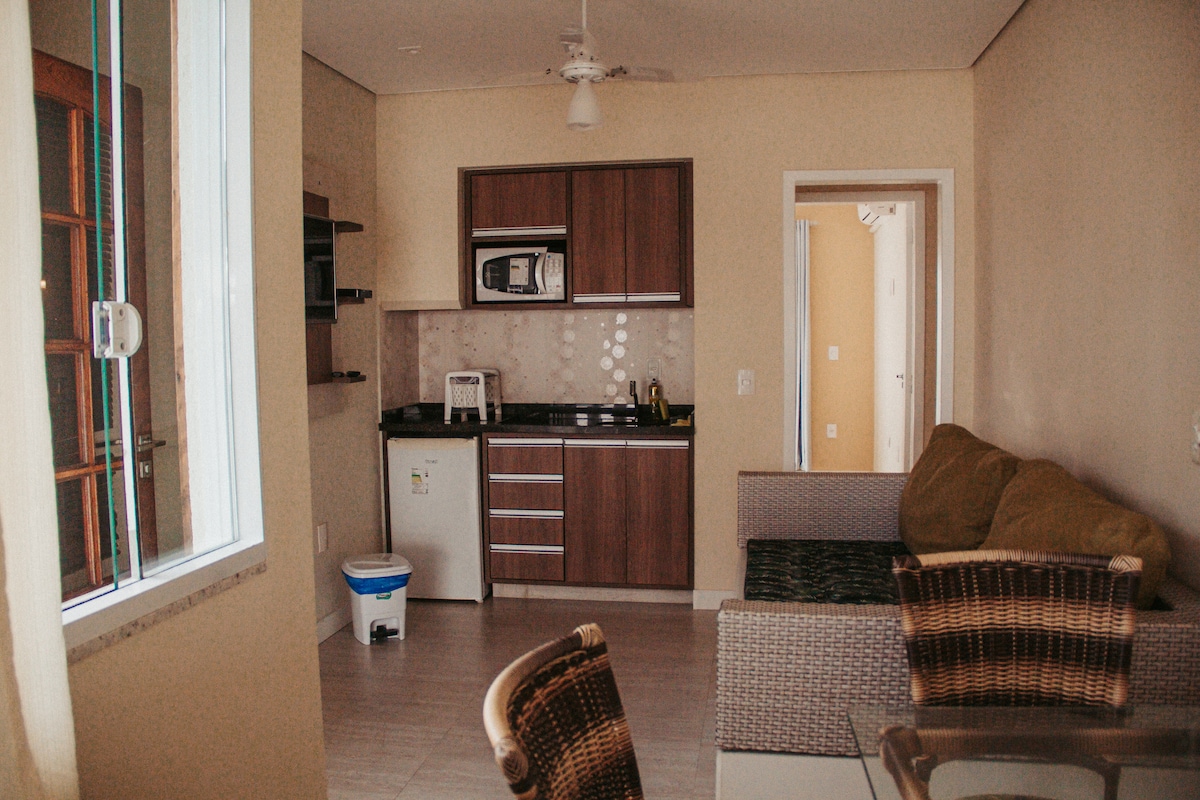 ¡Acogedora suite doble en la mejor ubicación de Bombinhas! Estamos en el centro, cerca del restaurante Mestre das Águas, a 150 metros de la playa. Es un ambiente cálido, con naturaleza y tranquilidad. Ideal para parejas y grupos. Tiene una moderna y práctica cocina comunitaria, piscina, parking. La habitación tiene baño propio, aire acondicionado y WI-FI. Cerca de la playa de Bombinhas, Lagoinha, 4 islas y Sepultura, a la que se puede llegar caminando.