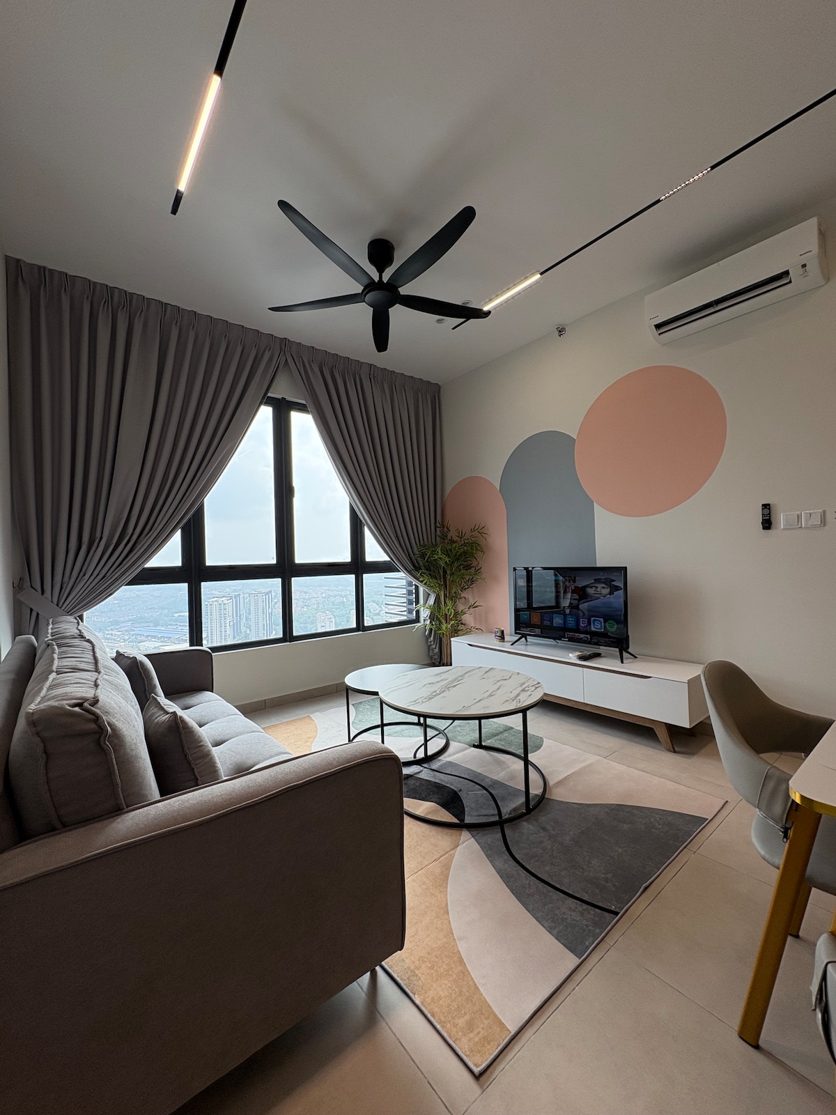 A cosy duplex on the highest floor of the building (Level 21), with a queen bed and a 3-seater sofa. Suitable for both short- and long-term stays. The building is in De Centrum Mall, with shops such as Super7 (supermarket), Mr. DIY, Watsons, and 7-Eleven among others, and facilities like launderettes and a clinic (Poliklinik MyMedik). •Check in time: from 3PM •Check out time: 12PM