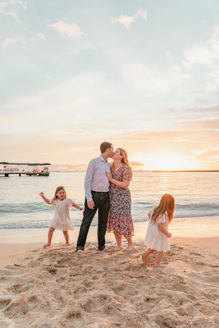 Organizo sesiones de retratos en la playa para parejas, familias y grupos grandes en Waikiki.