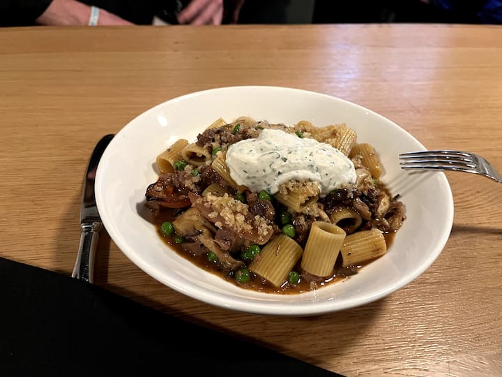 Entrante: costilla estofada, puré de patatas y salsa de reducción