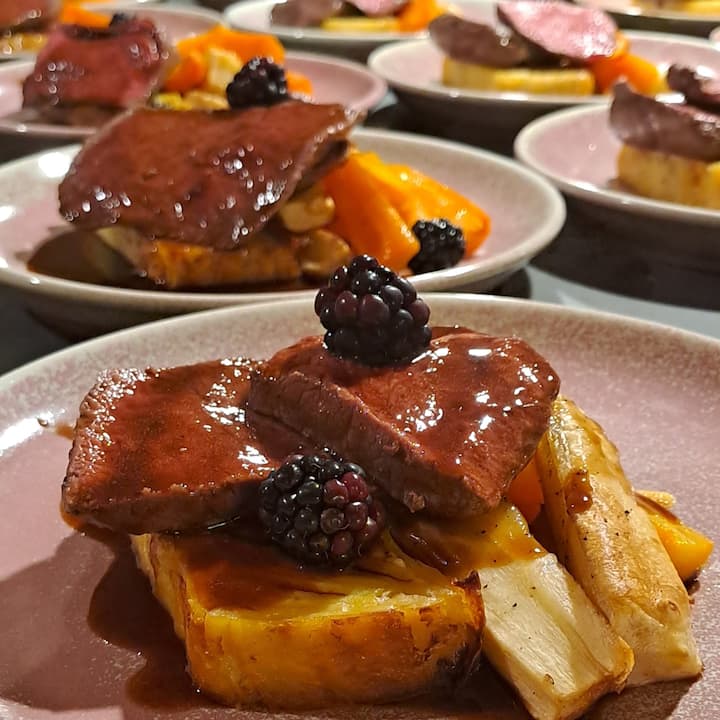 Disfrute de un menú de 4 platos con platos que incluyen quesos locales de las Tierras Altas, cortes de caza de temporada y postres escoceses con frutas locales.