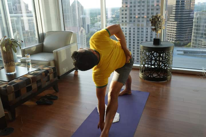 Esta sesión en solitario es apta para todos los niveles. Combina meditación, respiración y flujo de asanas para mejorar la relajación, el equilibrio y la sensación general de bienestar.