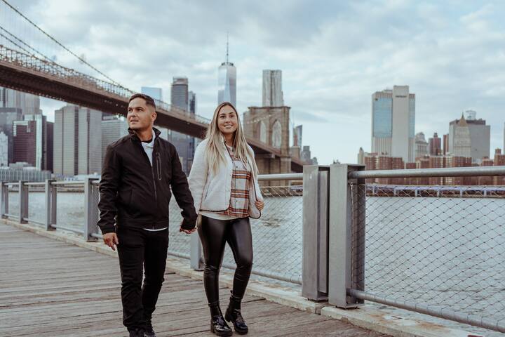 Sesión de fotos privada y relajada que captura la energía de Nueva York, desde el Puente de Brooklyn hasta DUMBO, pasando por las zonas costeras y los parques, para crear recuerdos divertidos y cinematográficos de la ciudad.