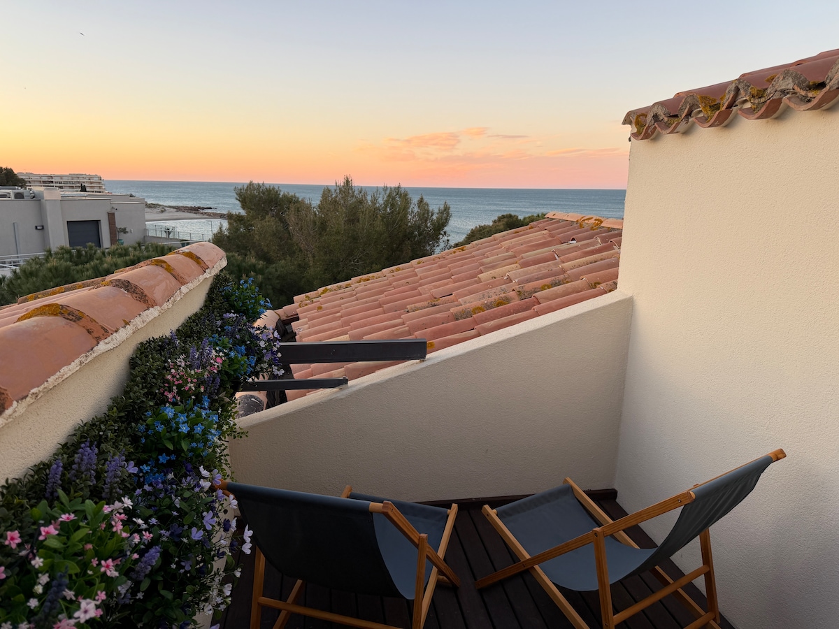 Relájese en este lugar de vacaciones único con vistas a la gran azul 💙 Este alojamiento con aire acondicionado es cómodo, con una bonita terraza y su sombrilla. Su sala de estar espaciosa y luminosa. Su sofá, su mesa de comedor y su cocina amueblada le permitirán compartir momentos agradables. Una habitación cómoda con armario de almacenamiento con vistas al mar. ¡Su cuarto de baño está hecho con buen gusto! El + un espacio de estacionamiento privado y WiFi. Qué decir... este alojamiento es un refugio de paz 😍