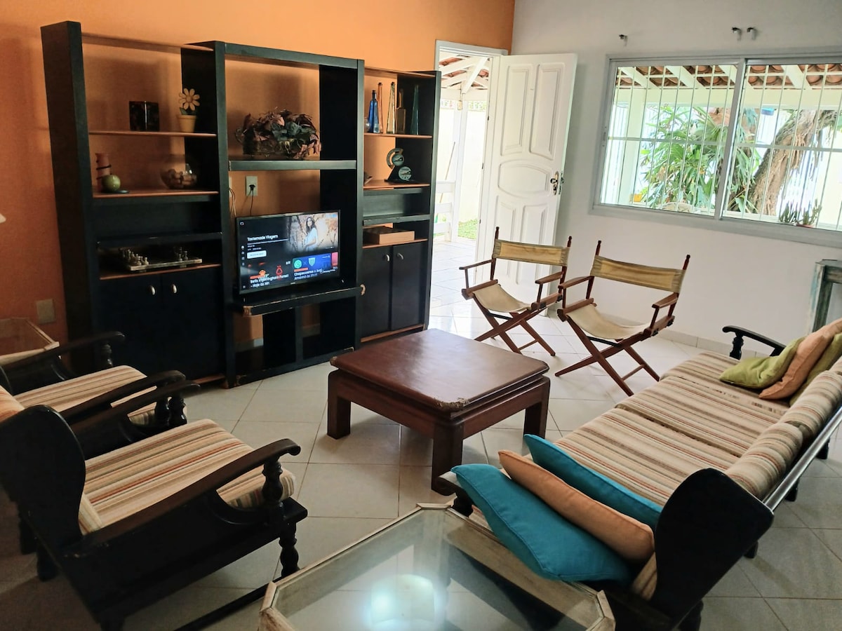 1- Piscina aquecida 2- Churrasqueira a carvão c/ grelha 3- Mesa de Ping pong 4- Estacionamento para 5 carros 5- Redes nas varandas 6- Ar-condicionados em todos os quartos. 7- Jardim com planta medicinais e calmante 9-Freezer na varanda 10- Frigobar e ponto de lanche no quarto principal. 11- Tv todos os quartos. 12- Ventiladores na varanda. 13-Cozinha equipada / ventilador de teto. 14- Tela contra mosquito. 15- 4 Colchões extras 16- Um sofá cama casal.