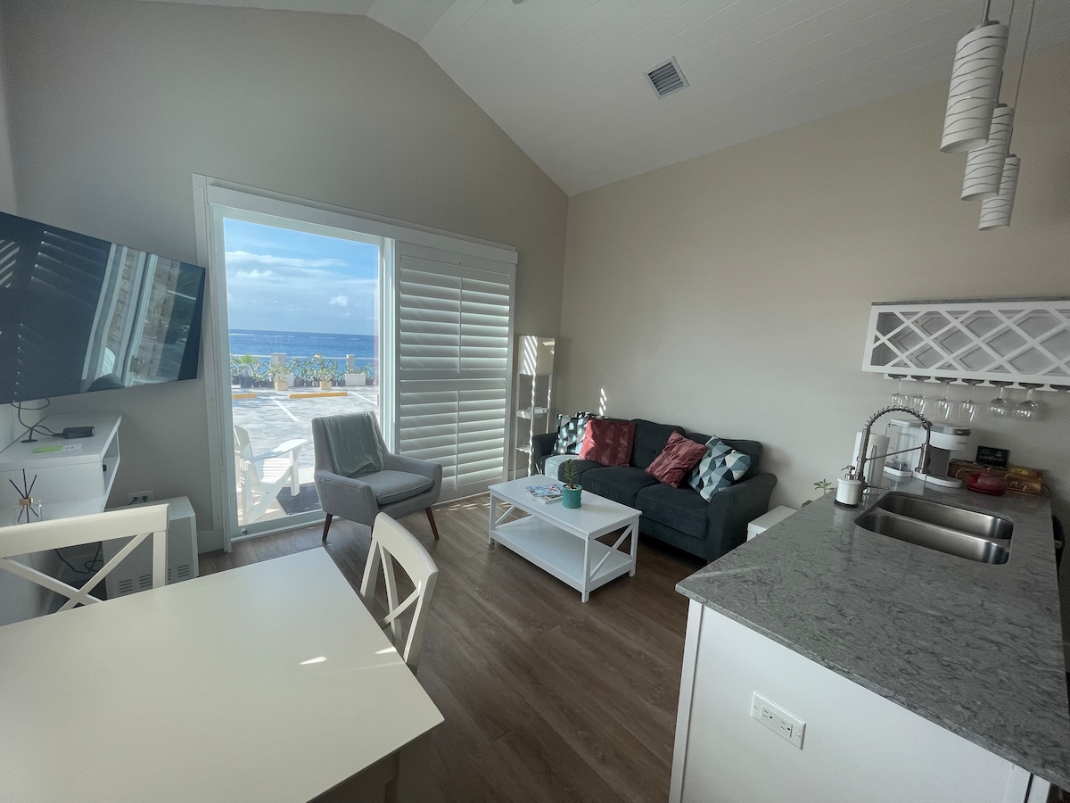 Bienvenido a este impresionante apartamento frente al mar de nueva construcción que cuenta con impresionantes e ininterrumpidas vistas al mar desde la sala de estar, la cocina y el dormitorio. Tanto si decides admirar el paisaje desde el elegante y moderno interior como si sales al amplio patio, quedarás cautivado por la belleza que te rodea. Este espacioso apartamento de un dormitorio y un baño con detalles y muebles elegantes y modernos ofrece amplia comodidad y conveniencia para tu estancia.