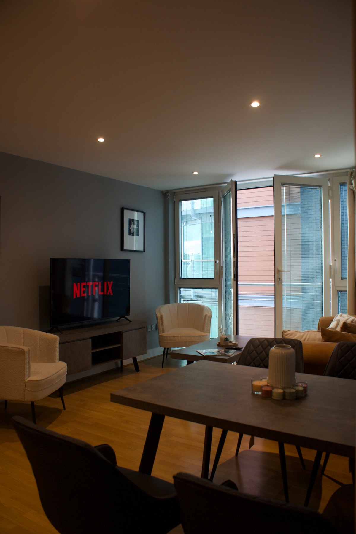 Nuestro departamento de 1 dormitorio con aire acondicionado es perfecto para dos. Encuentra una acogedora sala de estar, un dormitorio con una gran cama tamaño queen y ventilador HEPA, baño con artículos de tocador de alta gama, una elegante cocina equipada y una gran terraza muy verde solo para que disfrutes después de explorar Londres. Cerca de 4 estaciones de metro, todas a menos de 10 minutos a pie. Experimenta Londres desde lugares de interés de fama mundial, barrios emocionantes, hasta acogedores pubs junto al río, ¡siempre es un buen momento para visitarlo!
