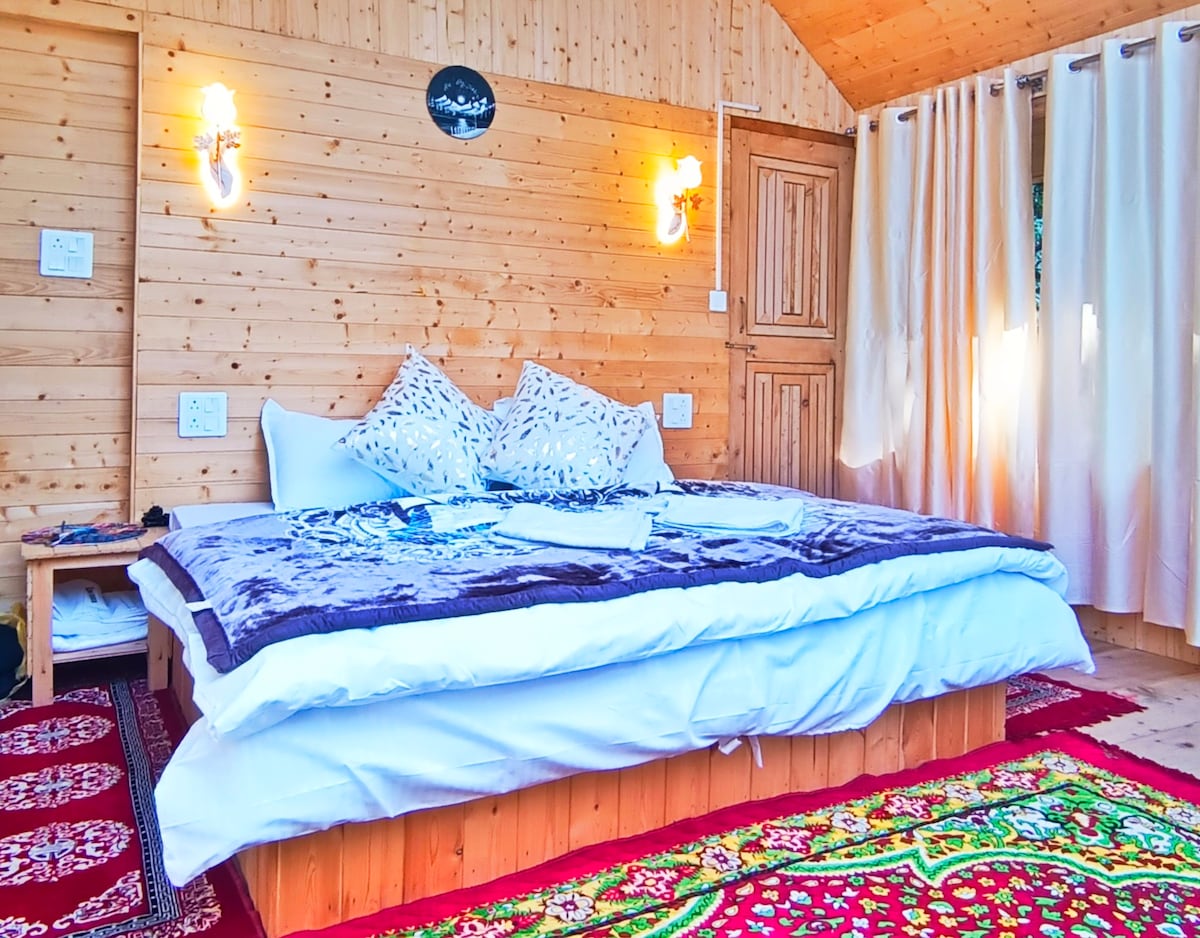 Esta exquisita casa con estructura de madera en el hermoso valle de Sainj es única en su clase. Puedes disfrutar de la impresionante vista de los glaciares nevados desde el lujo de tu cama suave y cómoda o explorar las increíbles rutas de senderismo a montañas, cascadas y praderas de los alrededores. Siente la calidez del anfitrión local que te asegura la hospitalidad perfecta. ¡Ven y saborea la magia de la naturaleza con todas las comodidades necesarias para vivir una experiencia inolvidable que atesorarás toda la vida!