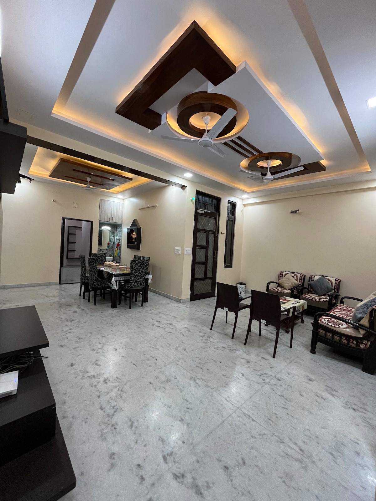Welcome to Maison Royale Jaipur, a luxury 3BHK retreat designed in an elegant modern French theme, located in the heart of Jaipur near Vivek Vihar Metro Station. Step into a world of soft pastel tones, chic Parisian décor, statement lighting, and thoughtfully curated interiors that blend European sophistication with Jaipur’s royal warmth. Whether you're visiting with family, your partner, or friends, this spacious home offers the perfect balance of comfort, privacy, and luxury.