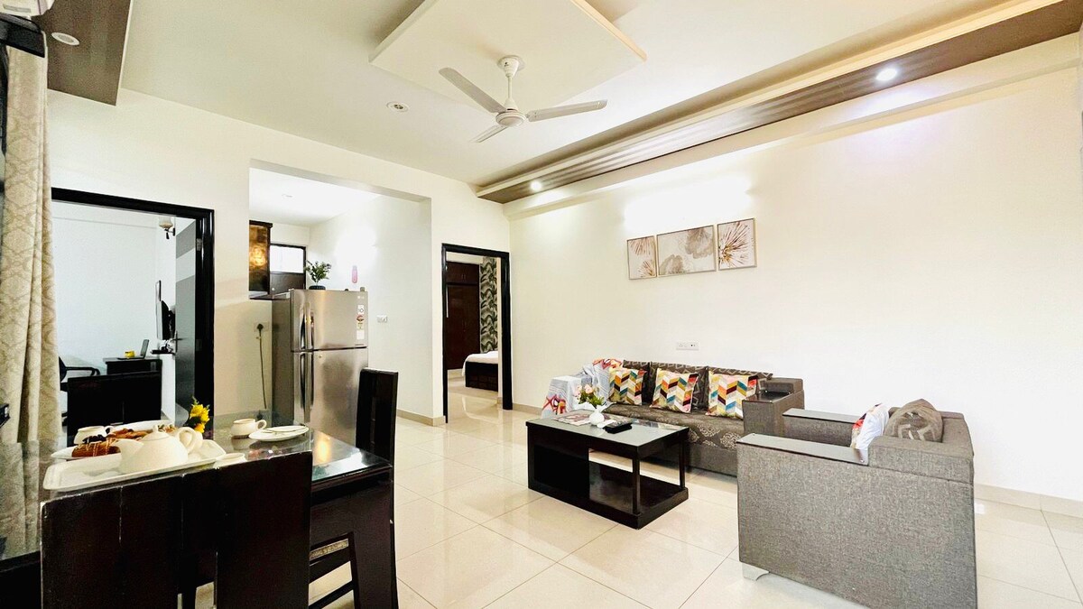 Private 3 Bedroom (3BHK) luxury apartment – no sharing Entire floor to yourself – complete privacy 4 bathrooms (attached to all bedrooms + 1 extra) Bright, airy home with lots of sunlight & ventilation Located close to top cafes & restaurants Privacy & feel of a home with fully functional and well equipped kitchen. AC in all rooms & living area • Curtains in all rooms • 65” Smart TV in living area + WiFi • Washing machine • keyless entry • Lift • Power backup • Fresh linens & toiletries