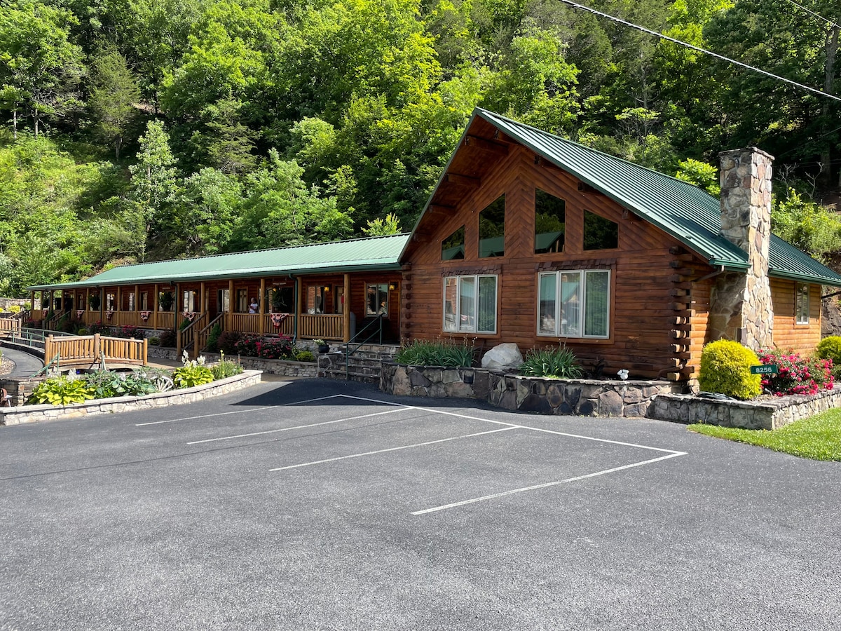 Nuestro Log Motel ofrece una divertida estancia familiar justo enfrente de nuestra tienda de regalos mientras también está cerca del río. ¡Esta unidad es un gran lugar para que un grupo de familiares y amigos se quede cerca en unas vacaciones divertidas! Mientras los niños juegan al minigolf afuera, los padres pueden comprar hasta que caigan justo dentro de nuestra tienda de regalos. Ven a disfrutar de una estancia divertida en las montañas con Smoke Hole.