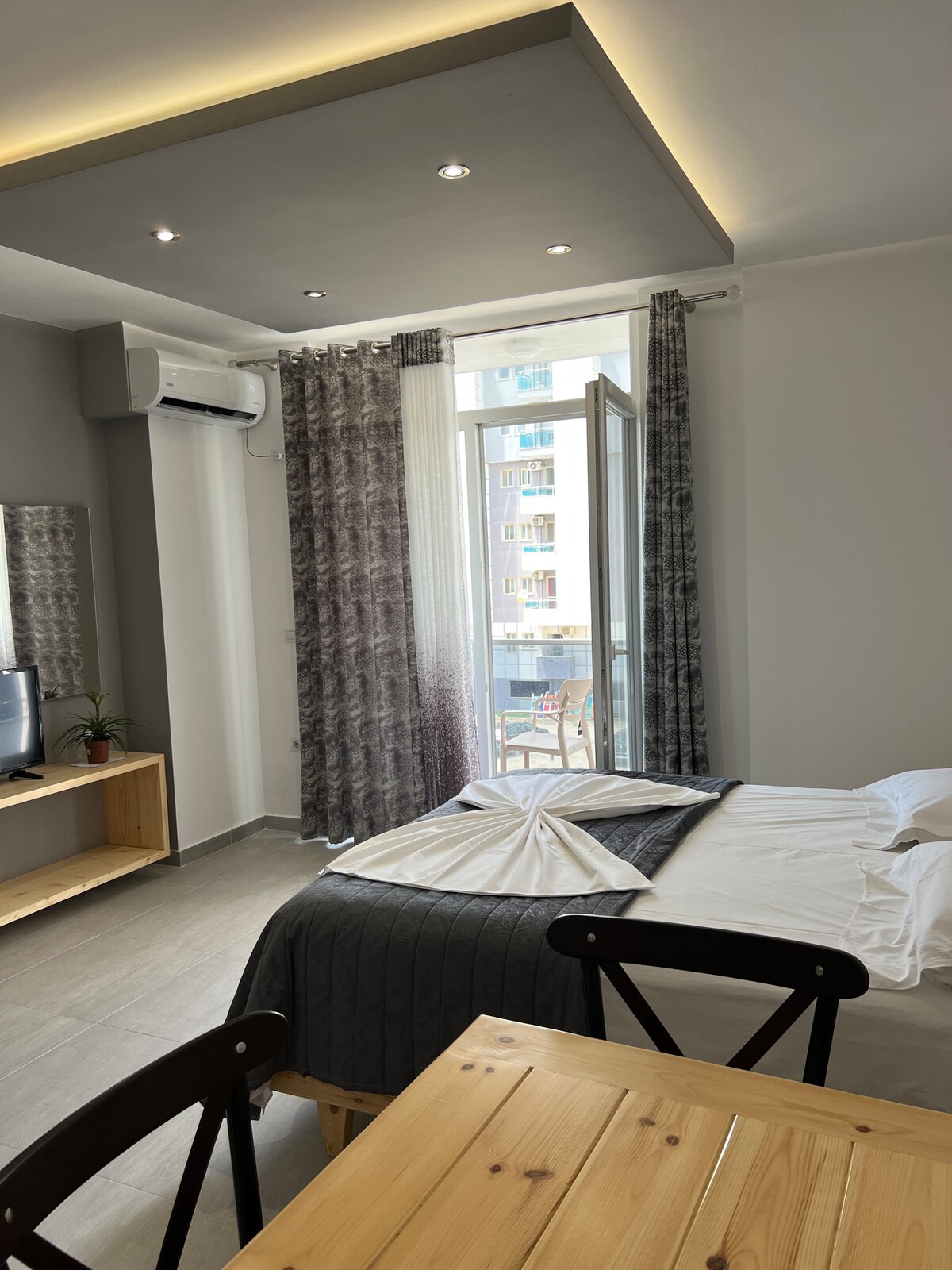Bienvenido a nuestro luminoso y moderno apartamento 1+1, perfecto para parejas o familias pequeñas. A solo un corto paseo de la playa, cuenta con un acogedor dormitorio, una cocina totalmente equipada, una cómoda sala de estar y un balcón privado. Disfruta de aire acondicionado, wifi gratuito y todo lo que necesitas para una estancia relajante. Estamos aquí para asegurarnos de que te sientas como en casa, tanto si te quedas unos días como si te quedas más tiempo.