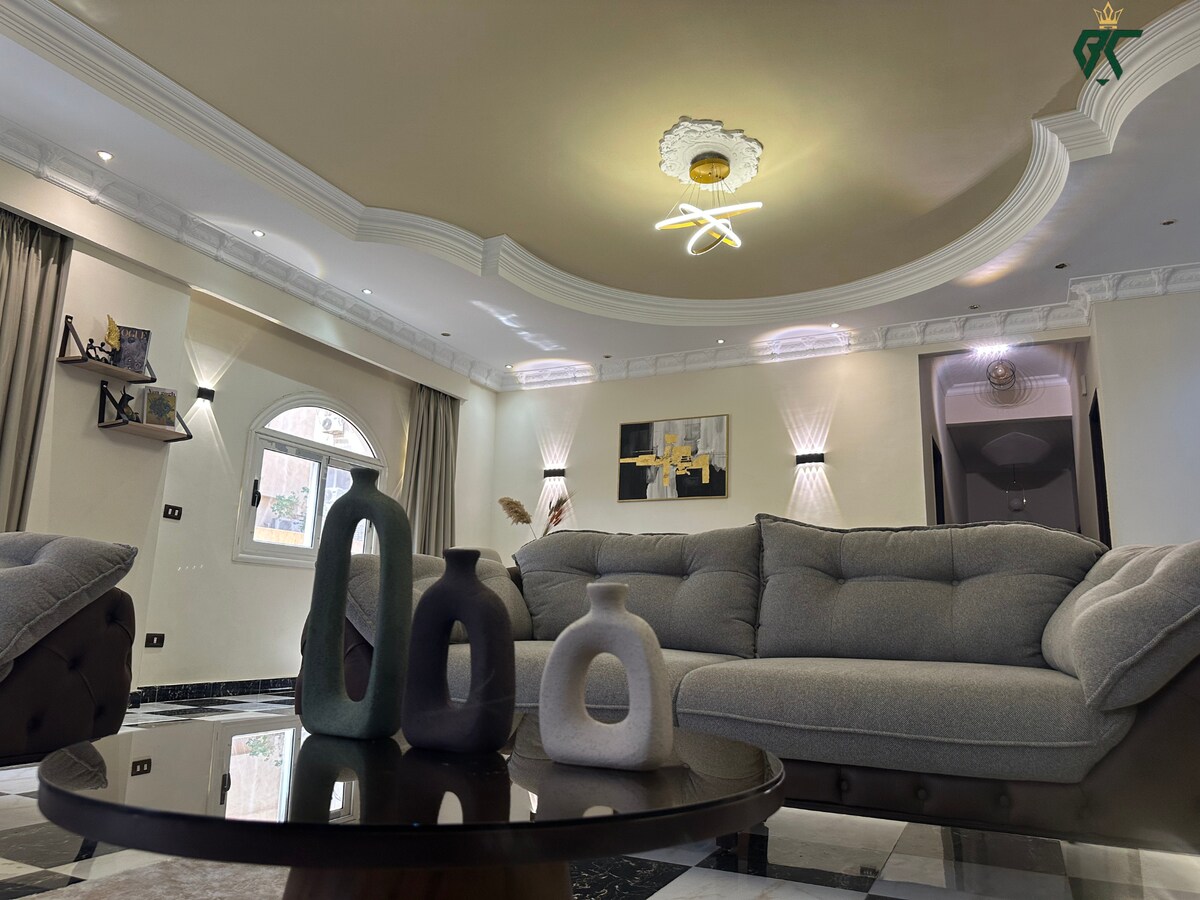 House of Nefertiti: una estancia real en El Cairo Vive como la realeza en este elegante apartamento de temática egipcia, a solo minutos del centro de la ciudad de Almaza, el aeropuerto de El Cairo y el centro de la ciudad. Disfruta de un jacuzzi privado en la unidad, una cocina totalmente equipada, un acogedor espacio de estar y un entorno tranquilo y familiar. Perfecto para parejas, viajeros solitarios o familias que buscan comodidad y un toque de historia. ¡Tu escapada faraónica te espera!