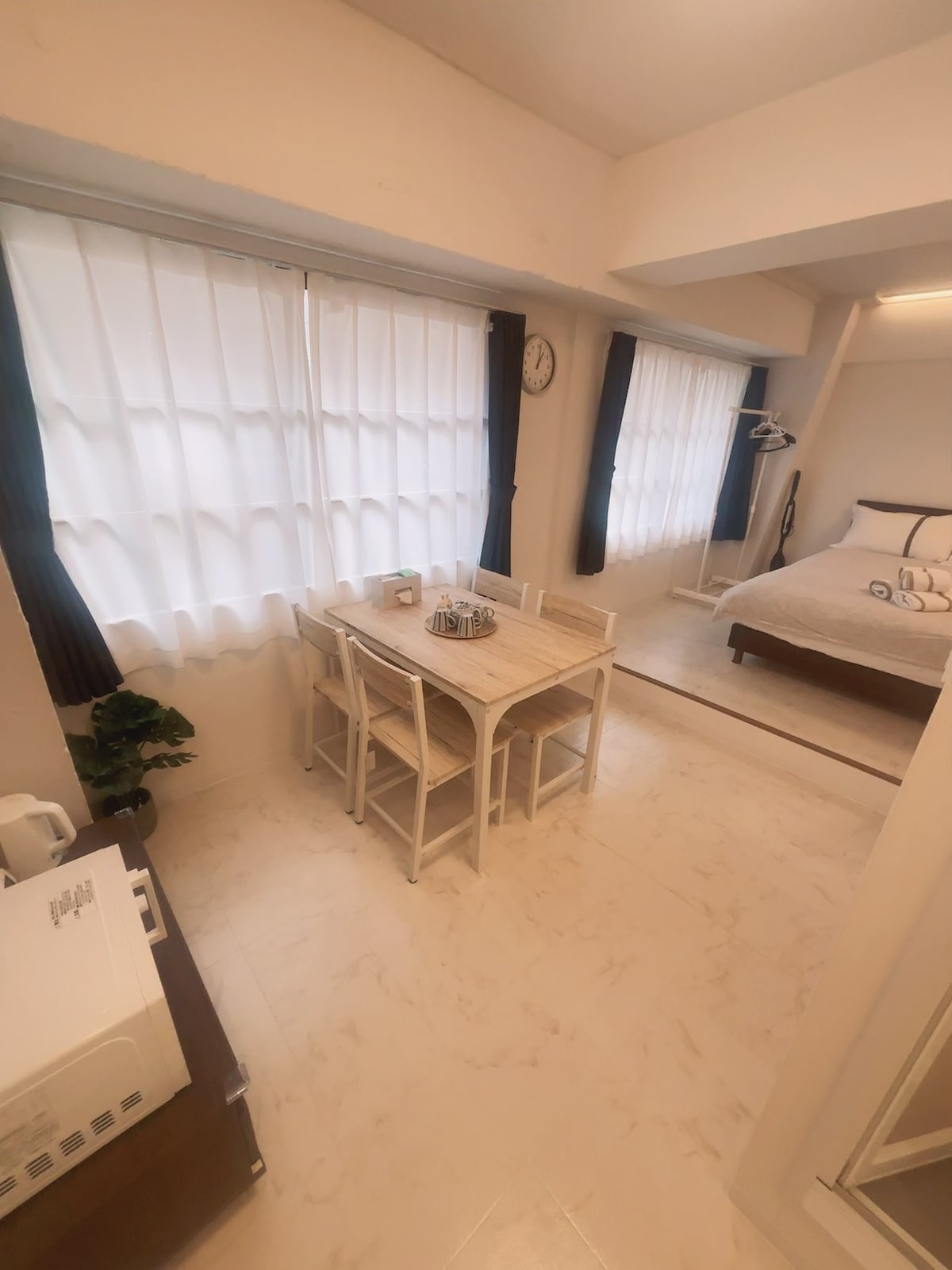 Se encuentra a 5 minutos a pie de la salida este de la estación de Shin-Osaka, una estación de tren bala. Esta es una casa independiente que es rara en Shin-Osaka. Se renovó con materiales principalmente naturales. Me encantaría si también pudieras disfrutar de iluminación indirecta y otra iluminación. La cama y algunos tipos de almohadas son cómodas y las sábanas son de satén sedoso. Y los electrodomésticos son los más recientes y funcionales. El horario de recepción es de 9:00 a 21:00, hora de Japón.