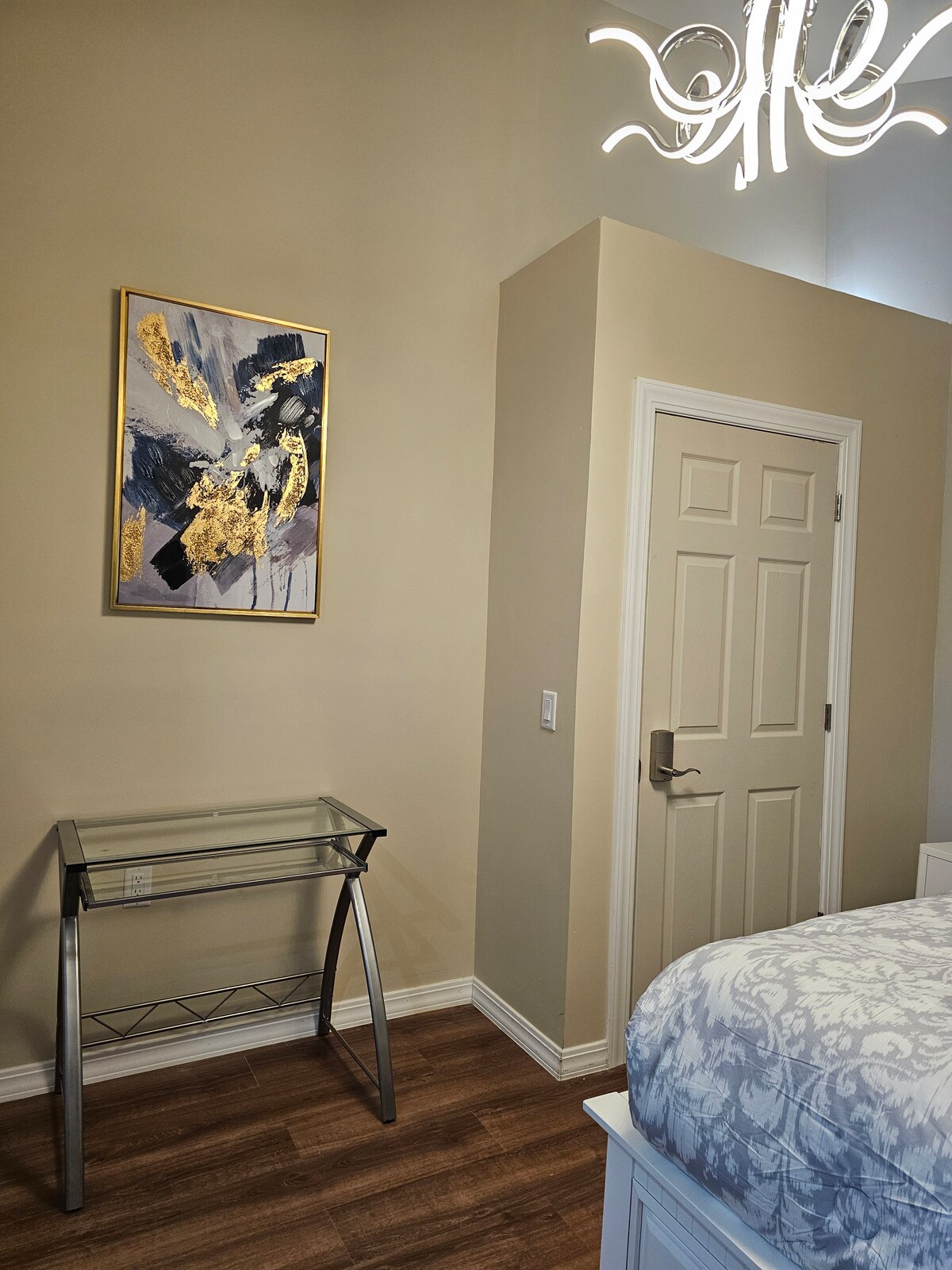 Al entrar por la puerta principal, te sentirás como en casa. Baño completo con ducha a ras de suelo y artículos de aseo. Sala de estar y estudio de lectura/trabajo separado con TV HD Roku de 60". Cocina totalmente funcional. Hay disponible una cama de aire doble o tamaño queen adicional, con ropa de cama, bajo petición para dormir un total de seis personas. Convenientemente cerca a 2 minutos del hospital Beloit, la tienda de comestibles, las tiendas de drogas/conveniencia, los restaurantes, los senderos para bicicletas/senderismo a lo largo del pintoresco río Rock, Beloit College y las actividades del centro de la ciudad.