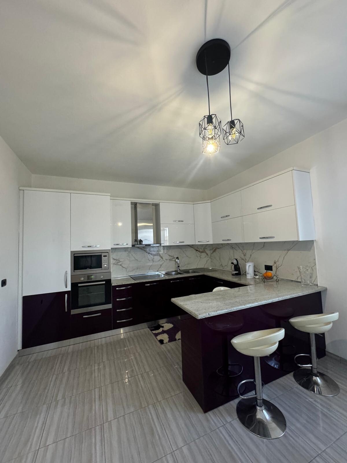 European Elegance Homes presenta un departamento de dos habitaciones cuidadosamente diseñado, en el que la estética europea moderna se combina con la comodidad y la funcionalidad. Las texturas naturales, los acabados refinados y las paredes de microcemento crean un ambiente tranquilo. Los pisos con calefacción y el aire acondicionado central garantizan comodidad durante todo el año, mientras que la bañera independiente en el dormitorio principal aporta un toque de lujo y tranquilidad. Muebles cuidadosamente seleccionados, obras de arte y sutiles detalles albaneses completan el espacio. Un balcón privado ofrece vistas panorámicas de la ciudad para disfrutar de momentos de relajación.