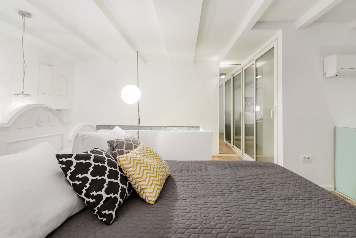 Relájate en el estudio con entrepiso en un alojamiento cerca del palacio