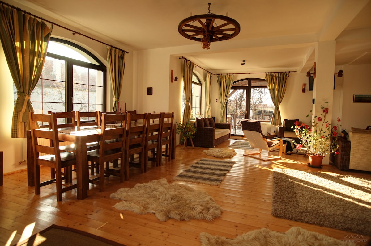 Una antigua casa sajona familiar de un pueblo centenario, restaurada en un encantador alojamiento para los viajeros que buscan descubrir la auténtica Transilvania. Capacidad para 19 huéspedes, sauna, barbacoa tradicional y que ofrece muchas opciones para actividades al aire libre, Casa Trappold es una excelente opción para familias, grupos de amigos y cualquier persona con gusto por experiencias originales. La casa de huéspedes está situada en el corazón del pueblo de Apold, a solo 15 km del Patrimonio de la Humanidad de la UNESCO, Sighisoara.