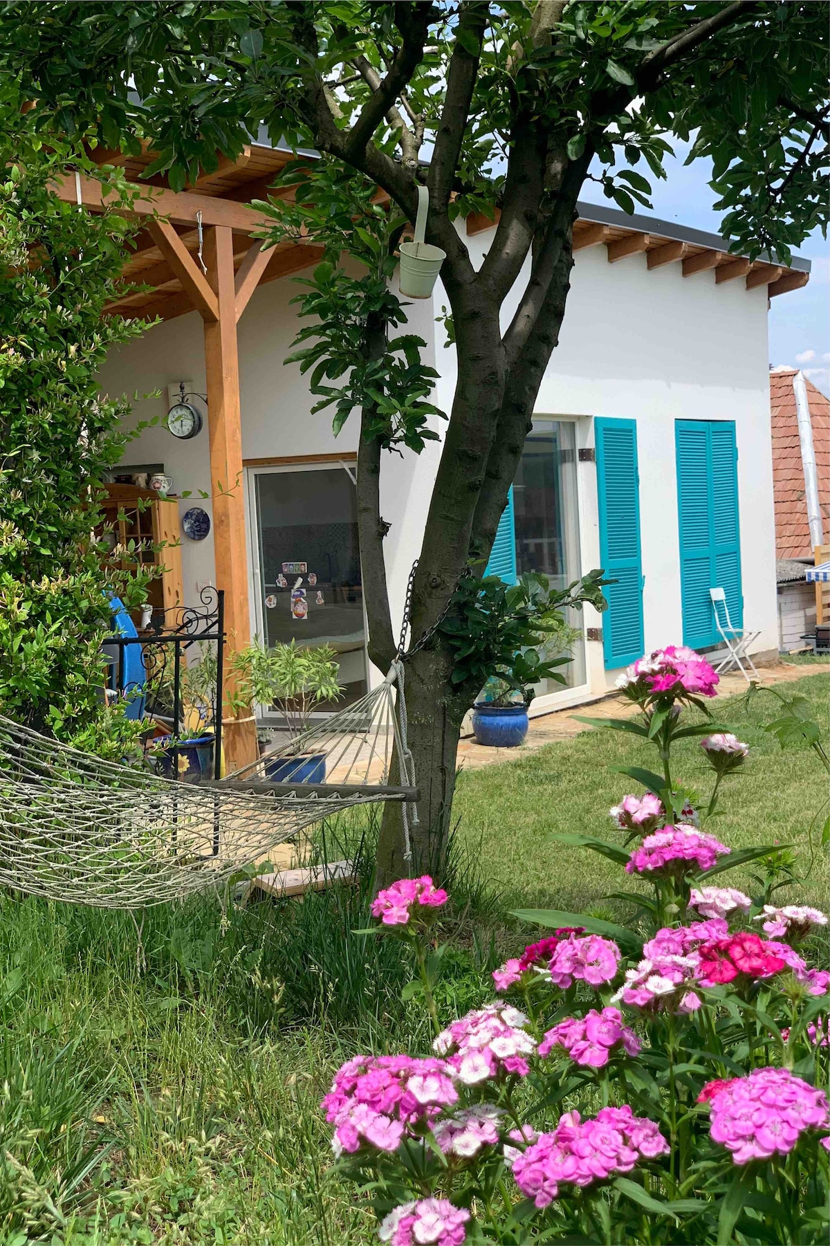 ¡Entra en nuestro verde oasis después de un día de visitas turísticas! Disfruta de nuestro maravilloso jardín lleno de todo lo que nos ofrecen las estaciones. Da un maravilloso paseo de 5 minutos hasta la ciudadela y disfruta de un buen vino en uno de los restaurantes o bares más románticos :) Nuestra encantadora casa de jardín tiene su propia entrada y una cocina totalmente equipada. La terraza da al jardín ricamente lleno. Disfruta de un descanso allí y respira en el jardín.