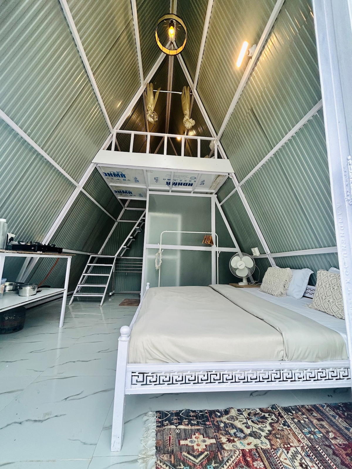 Escápese a nuestra acogedora cabaña con forma de A en el apacible valle de Khaniyara, en Dharamshala, y disfrute de una estancia rodeada de naturaleza y comodidad. Rodeado de vegetación y con cálidos interiores de madera, es perfecto para relajarse. Hay un estacionamiento seguro a solo 100 metros. Disfrute de caminatas cercanas, lugares para hacer pícnics, jardines de té y fácil acceso a Dharamshala, McLeodganj y al estadio de críquet. Con una chimenea en el interior y un fogón al aire libre, su estancia será realmente especial.