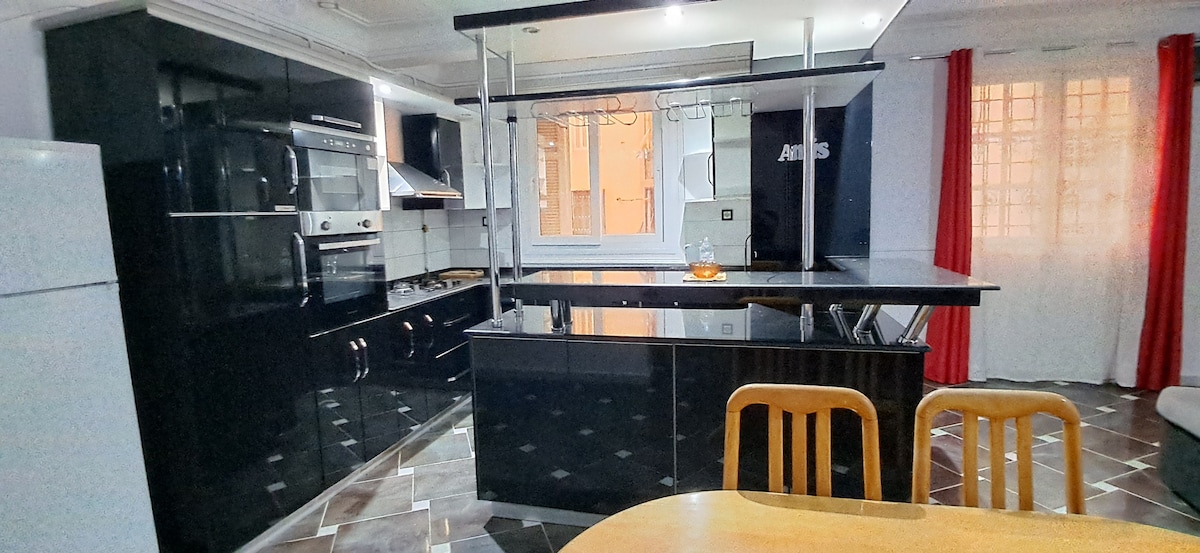 T2 muy amplio de 60 m2 en el 1.er piso adaptado a la familia situado en el corazón de la nueva ciudad de Tizi ouzou muy accesible como al transporte o bien comercio con una cocina equipada en vajilla y horno, microondas placa de cocción ...