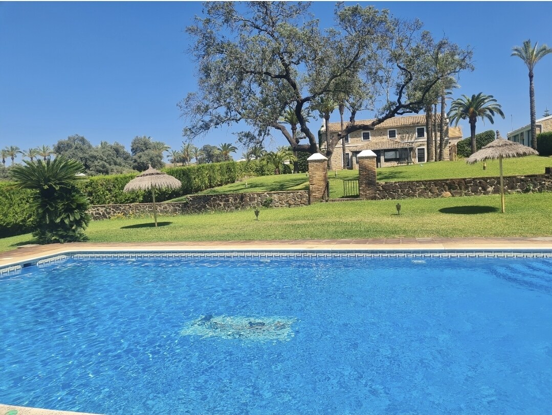 Suite privada deluxe con cocina completa, salón, vestidor, cuarto para dejar maletas y baño completo con placa de ducha. Tiene 2 entradas/salidas independientes, por lo que es luminoso y de fácil acceso. La puerta principal da a un gran patio andaluz con una fuente y bancos donde pasar las noches mirando las estrellas. La puerta trasera da a unas bonitas vistas a la montaña y a la dehesa. Dispone de aire, calefacción, wifi y TV Perfectas condiciones. Desayuno y limpieza habitación incluido