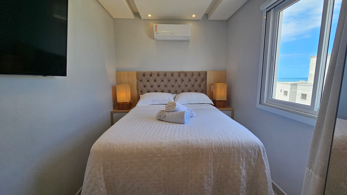El atardecer entra por la ventana y la vista del mar le recuerda en silencio que Imbituba es especial. Studio Aura da Vila combina vistas, comodidad y estructura: azotea con piscina climatizada y borde infinito, gimnasio, coworking, solárium y sala de juegos. Ideal para parejas y viajeros que buscan practicidad con un ambiente premium, ese lugar que te hace querer quedarte un día más.