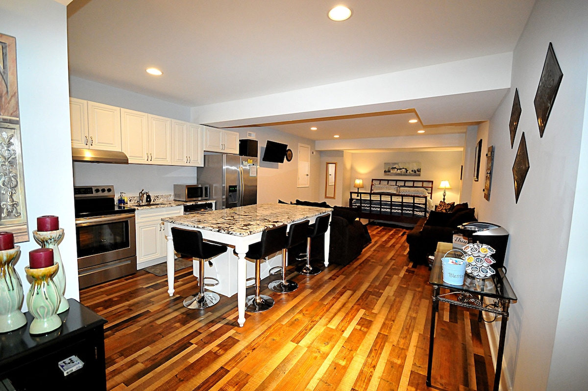 Apartamento tipo estudio encantador, acogedor y completamente privado en el corazón de Charlotte. Ubicado en el histórico y transitable barrio de Elizabeth, a 2 millas del centro de la ciudad. Cuidadosamente amueblado con una elegante mezcla de piezas antiguas y modernas. Cocina completa, lavadora/secadora privada, mucho espacio en el armario. A poca distancia a pie de 2 grandes hospitales (Novant y Atrium), el Greenway, el teatro Visualite y fabulosos restaurantes y bares en el moderno barrio de Plaza Midwood y en el majestuoso Myers Park.