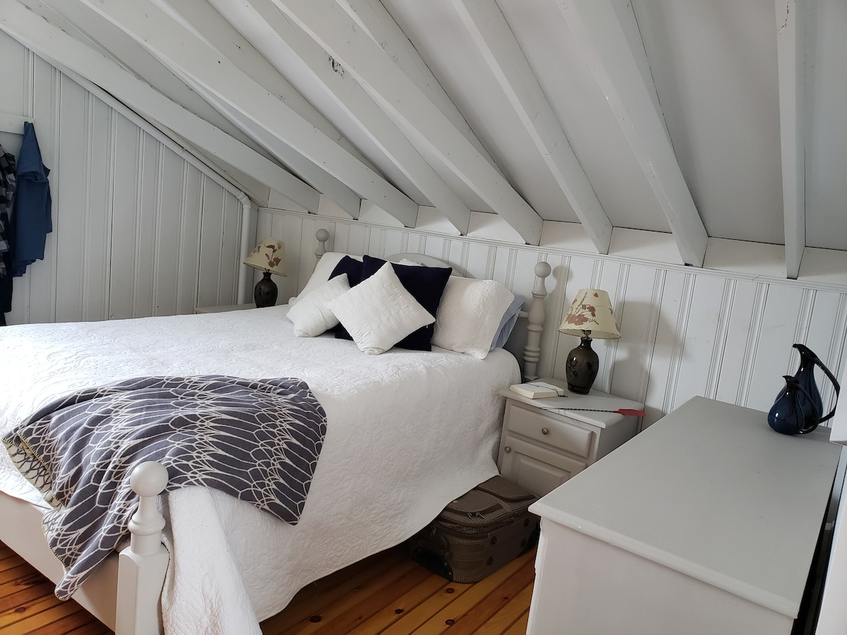 ¡Ven y quédate en nuestra casa de campo frente a la playa, bellamente renovada y para *toda temporada*, y disfruta de una impresionantes vistas panorámicas de la bahía Georgiana! Descubrirás la casa de campo situada en la cima de una duna de arena, justo en una de las playas de agua dulce más impresionantes del mundo. Esta rara ubicación alberga una terraza cubierta privada que se cierne sobre la arena blanca, en una casa de playa más cerca de la bahía que en cualquier otro lugar. Los huéspedes de verano también disfrutan del uso de una piscina climatizada de agua salada y una gran terraza del centro vacacional creada por Paul Lafrance.