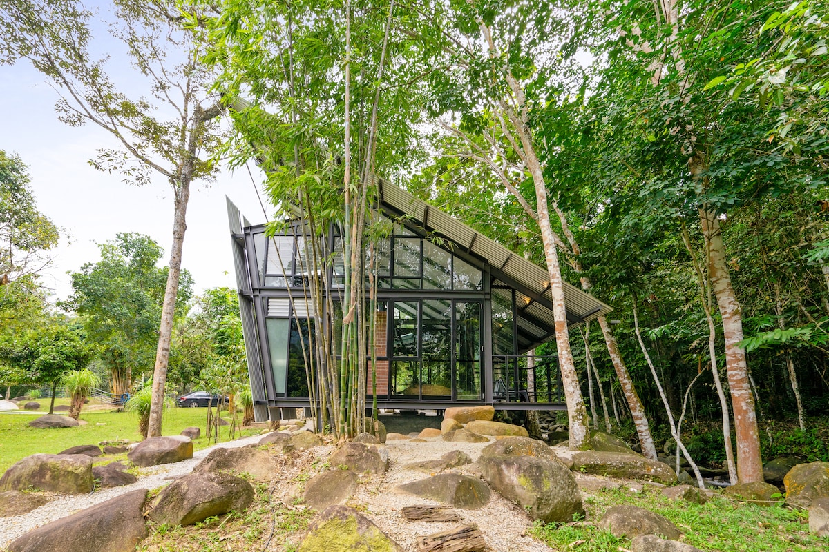 Estos chalets están construidos dentro de una reserva de bosque tropical, ubicada en el distrito Pantai de Negeri Sembilan, Malasia. Es la escapada perfecta para los amantes de la naturaleza, así como para aquellos que buscan tranquilidad, lejos de la vida agitada de la ciudad. El aire es fresco y la temperatura promedio aquí se desvía entre 24 °C y 32 °C. Durante la noche o cuando llueve, el clima aquí es excepcionalmente refrescante. El agua utilizada en nuestro chalet es fresca y se recoge de la colina.