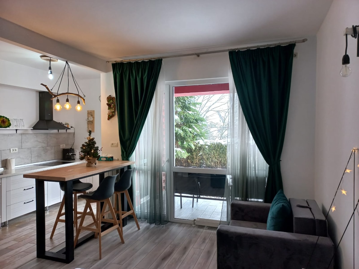 ¡Descubre un rincón del cielo en medio de las montañas de Green Horizon! Ideal para familias de hasta 4 personas, este apartamento de dos habitaciones ofrece todo lo que necesitarías para una estancia inolvidable. El diseño moderno y los colores agradables te harán sentir en casa. Si deseas relajarte en la sala de estar después de un día ajetreado o disfrutar de un café en la terraza, la hermosa vista a las montañas te encantará en todo momento. ¡Elige disfrutar de la belleza de Sinaia de la manera más agradable con Green Horizon!