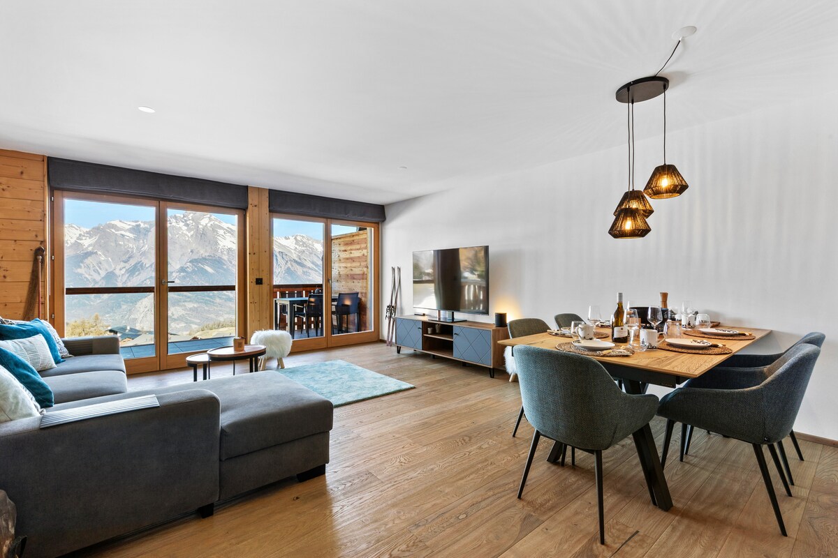 ¡Disfruta de tu estadía en los Alpes del Valais! Nuestro moderno apartamento de 3,5 habitaciones está idealmente ubicado en rutas de senderismo y ciclismo. Espera un espacioso salón-comedor con vistas a la montaña, cocina totalmente equipada, wifi rápido y TV inteligente. Después de los días activos, relájate en el spa del hotel con sauna y jacuzzi. Aparcamiento seguro para bicicletas, 2 plazas de aparcamiento subterráneo con estación de carga eléctrica incluida. ¡Perfecto para amantes de la naturaleza, familias y aquellos que buscan relajación!