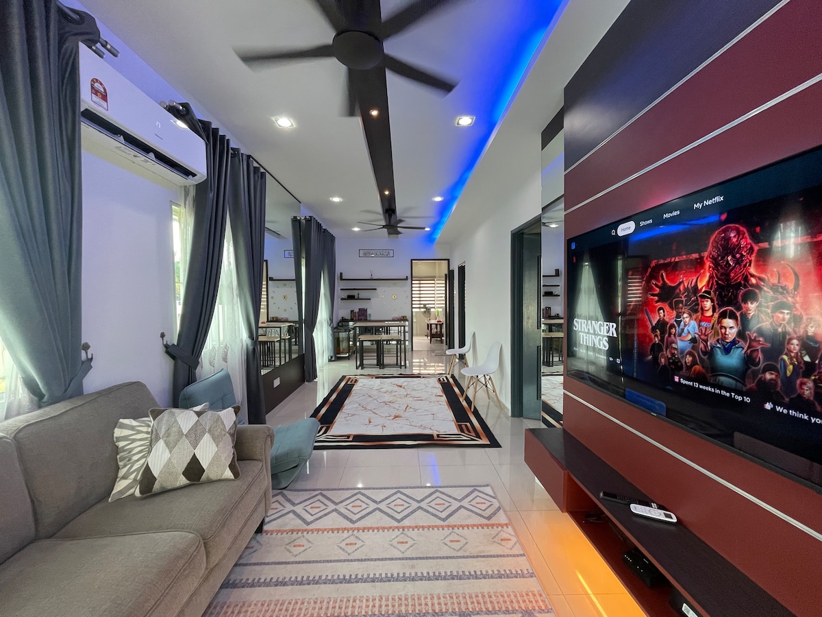 - Casa Landed de una sola planta en Sitiawan. - No se permiten fiestas. - 3 dormitorios con aire acondicionado y 1 sala de estar con aire acondicionado. - 4 colchones -2 calefactor de agua - Toalla incluida - TM unifi incluido - A 5 minutos se puede llegar a AEON Sri Manjung, Sitiawan, Kg Acheh Perindustrian. - Televisión inteligente incluida - Hora de check-in y check-out flexibles, - El cliente no tiene que esperar para hacer el check-in y el check-out. - Cambio de funda de colchón y toalla cada vez que los huéspedes lleguen. - Hemos instalado la cámara de seguridad en el área de estacionamiento para proteger tu seguridad.