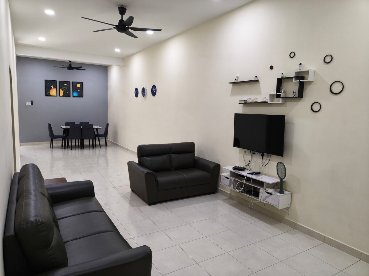 Relájate con toda la familia en este lugar tranquilo para hospedarte. A 2 minutos en coche de Kampung Koh A 8 minutos en coche de Lotus A 10 minutos en coche de Macdonald's/Aeon Seri Manjung A 20 minutos en coche de Marina Island / Teluk Batik Beach / Lumut 3 dormitorios con aire acondicionado 2 baños 1 amplia sala de estar con aire acondicionado Cocina. Capacidad para un máximo de 8 huéspedes El espacio Distribución DE las camas : Habitación principal - Cama king Habitación 2 - Cama king Habitación 3 - Cama Queen Espacio común - Cama de piso individual x 2 Solo se permite cocinar ligero. No se permiten mascotas.