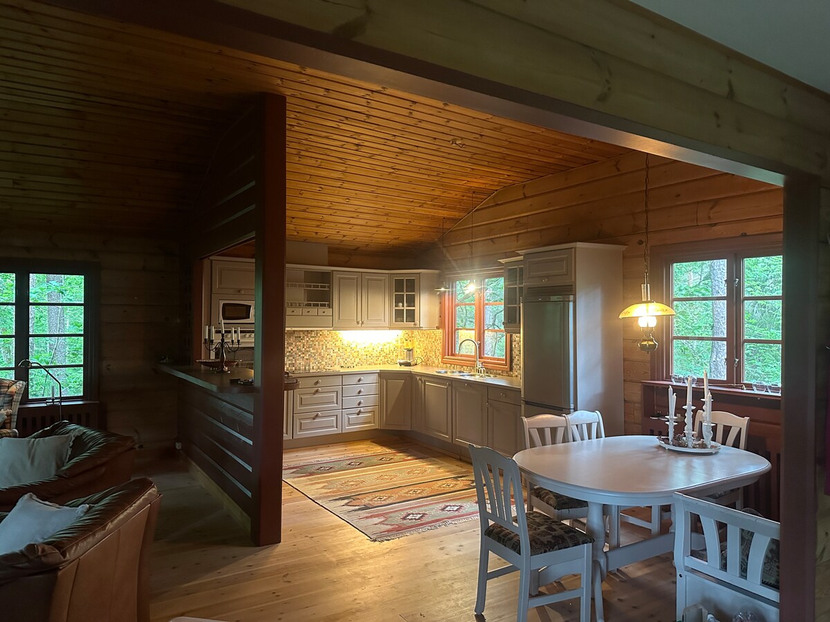 ¡Vive en una acogedora cabaña de madera en medio del bosque, a 100 metros del lago! Hermosos alrededores, muchos lugares para caminar y relajarse en la naturaleza, tanto en verano como en invierno. El parque Vallåsen, que ofrece uno de los mejores parques de bicicletas de Suecia, así como pistas de esquí y esquí de fondo, está a solo 25 minutos de nuestra cabaña. La cabaña tiene una superficie de unos 100 metros cuadrados. A su disposición hay una cocina totalmente equipada, un baño, un salón con chimenea, dos dormitorios y una acogedora sauna privada.