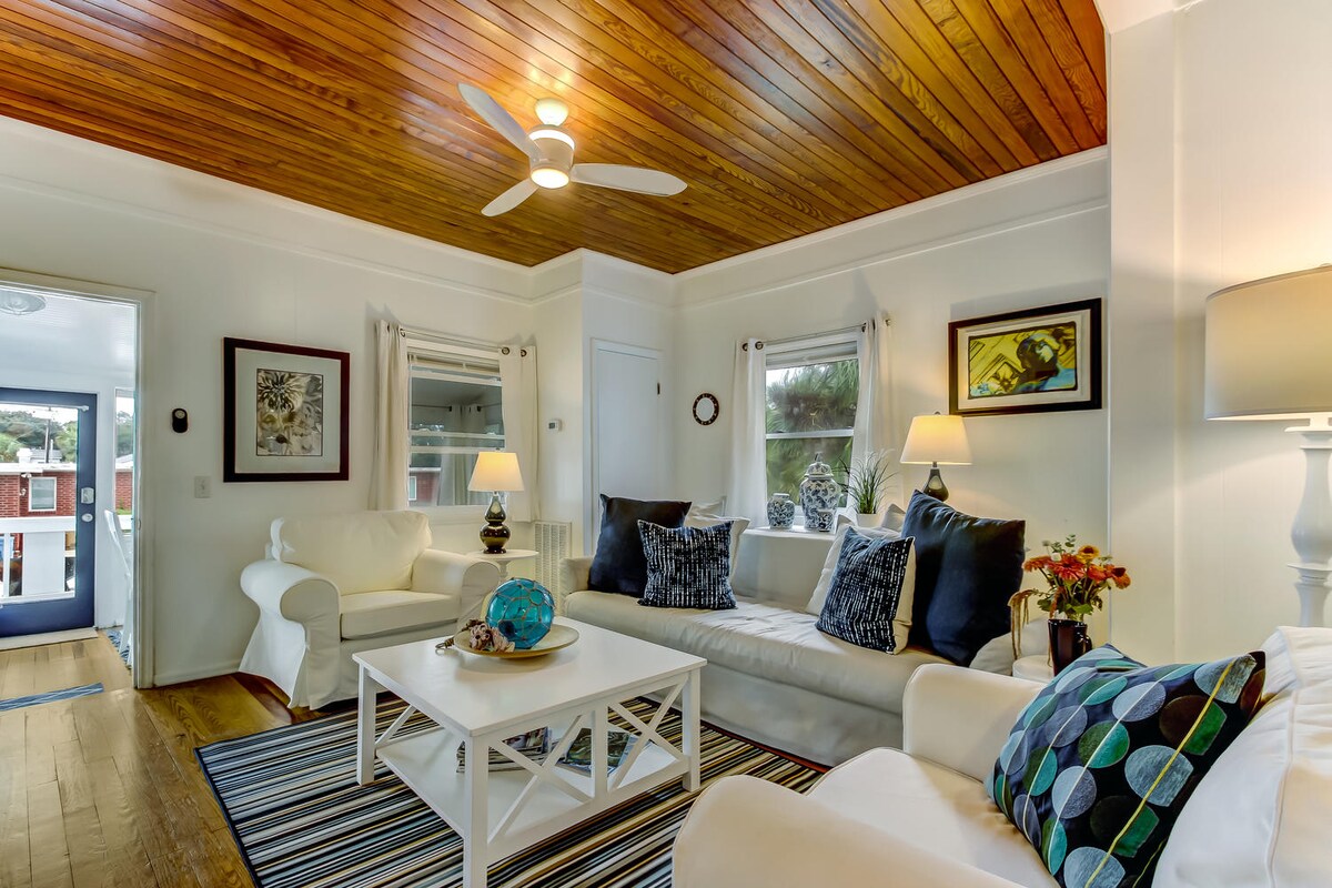 Relájate y desconecta en este alojamiento tranquilo y elegante. Entorno tranquilo y barrio super silencioso. ¡Disfruta de mi increíble trocito del paraíso! Privado, caprichoso, patio lateral con parrilla de carbón, gran porche delantero y zona súper tranquila. Sin embargo, a solo 4 manzanas de la playa y del río trasero para disfrutar de increíbles puestas de sol y a 8 manzanas del distrito del centro y del muelle. Esta es una casa dividida por la mitad, por lo que hay puertas cerradas entre ustedes, pero se agradece la consideración del ruido.
