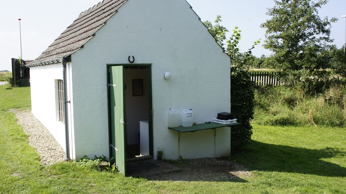 Disfruta de las vistas del Limfjord en esta encantadora cabaña ubicada aislada en el patio trasero de nuestra acogedora granja, donde puedes saludar tanto a pollos, caballos, perros y vacas. La caravana consta de una habitación grande con una cama doble grande de 180 * 210 cm. Solo trae ropa de cama (los edredones también miden 210 cm de largo). El inodoro y el baño están en un vagón separado a unos 20 metros de la caravana. En la caravana hay una cocina totalmente equipada con horno, quemador de gas, nevera (así como un pequeño congelador) y servicio.