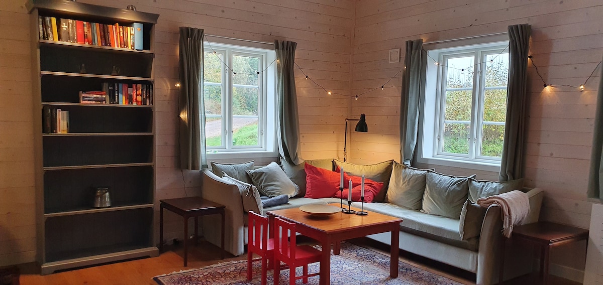 Alójate en un entorn singular del centre de Uddevalla . Disfruta de la naturaleza en la pintoresca Herrestadsfjället o haz un viaje en barco a una de las joyas de Bohuslän. Con nosotros vives en una pequeña casa de campo del siglo XIX, con gran terraza y acceso a un jardín. El aparcamiento se realiza en los terrenos y, si quieres trabajar durante un tiempo, hay un espacio de trabajo funcional con wifi. Amplio salón con mesa de comedor y un generoso sofá, una cocina recién renovada que está totalmente equipada para cocinar de todo, arriba con dormitorio y dormitorio.