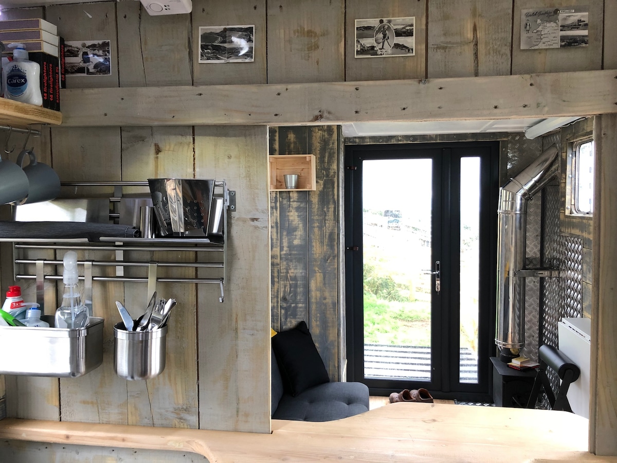Nuestra caja de caballos se ha convertido amorosamente en una increíble experiencia de glamping que nunca olvidarás; creemos que es increíble. Las vistas de Snowdonia y la península de Llyn son insuperables. Siéntate afuera, contempla las estrellas frente a tu propia fogata y observa cómo se pone el sol desde la mesa de pícnic. Capacidad para 4 personas; una doble por encima de la "cabina" y el sofá forma una pequeña cama doble. Hay una cocina, una ducha, un inodoro de compostaje y un proyector de 60pulgadas para transmitir películas o música.