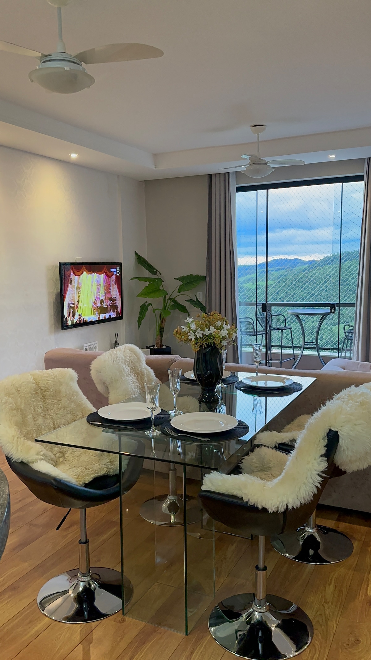 Uma vista maravilhosa bem decorado um lugar tranquilo e bem-localizado. Apartamento com dois dormitórios 2 banheiro Sala Cozinha americana Área de serviço Varanda com vista para as montanhas incrível 1 vaga de garagem coberta Condomínio com portaria Elevador e escada Quiosques com churrasqueira Quadra poliesportiva Jardim e horta. Bairro tranquilo 10 minutos do centro da cidade. Se você está procurando um apartamento tranquilo, você encontrou o lugar certo Piscina fechada
