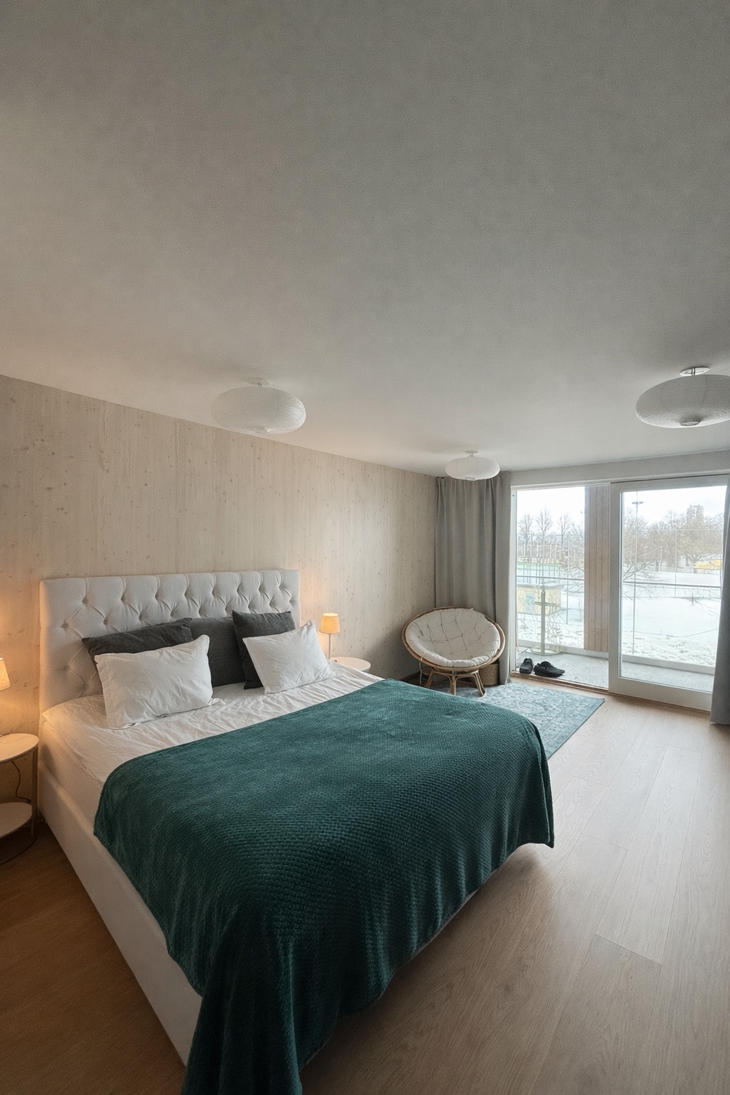 ¡Apartamento completamente nuevo en la villa! Capacidad para 2 adultos y un niño. Amplio baño de 10 m², con sauna, bañera, ducha, inodoro y lavabo. Habitación de unos 20 m² con una cama doble. Todas las sábanas y toallas están incluidas en el precio. Incluye un sofá y una cocina. El anfitrión te dará un código para la puerta el día de tu llegada. Puede hacer el check-in a la hora que desee. También hay una caja de carga para coches eléctricos a un coste por kilovatio-hora. La mayoría de la iluminación es regulable. Hay una terraza cubierta disponible.