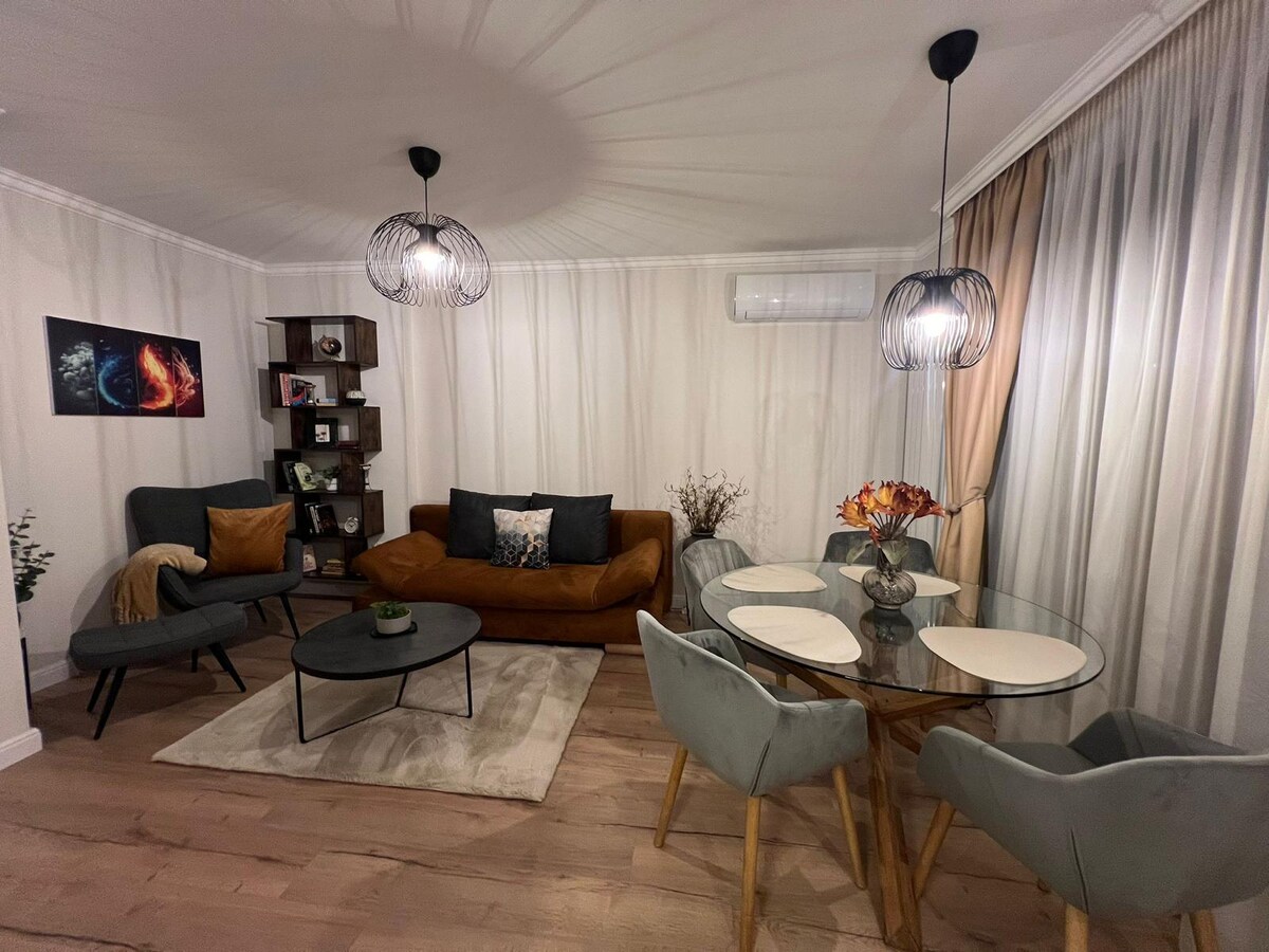 Welcome to a spacious, modern 2-bedroom apartment designed for both relaxation and productivity. This bright and stylish home offers everything you need for a comfortable stay. - Near Sofia Airport - Private parking space Enjoy breathtaking city skyline and mountain views, a cosy living area, and top-notch amenities tailored for short- and long-term stays. The building is fully accessible and friendly for people with special needs, ensuring a seamless experience for all guests.