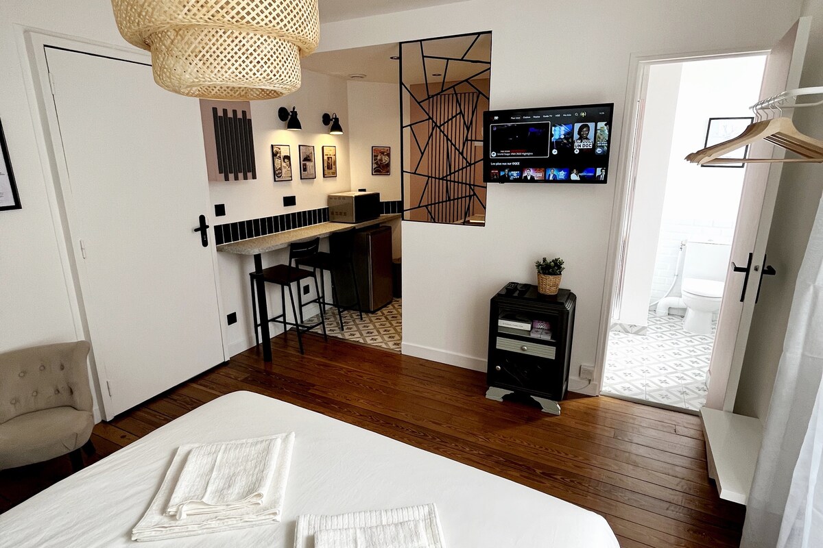 Simplifíquese la vida en este alojamiento tranquilo y céntrico, con servicios a su disposición: consigna de equipaje, lavandería y alquiler de bicicletas eléctricas. Su acogedor espacio ha sido optimizado para darle la bienvenida cómodamente. Situado en las murallas de la ciudad baja, se encuentra a 5 minutos a pie del centro de la ciudad y la estación de tren. Encontrarás todas las comodidades necesarias: cocina equipada, wifi, Bbox y un baño con ducha e inodoro. Arriba, la habitación es un verdadero nidito. Aparcamiento