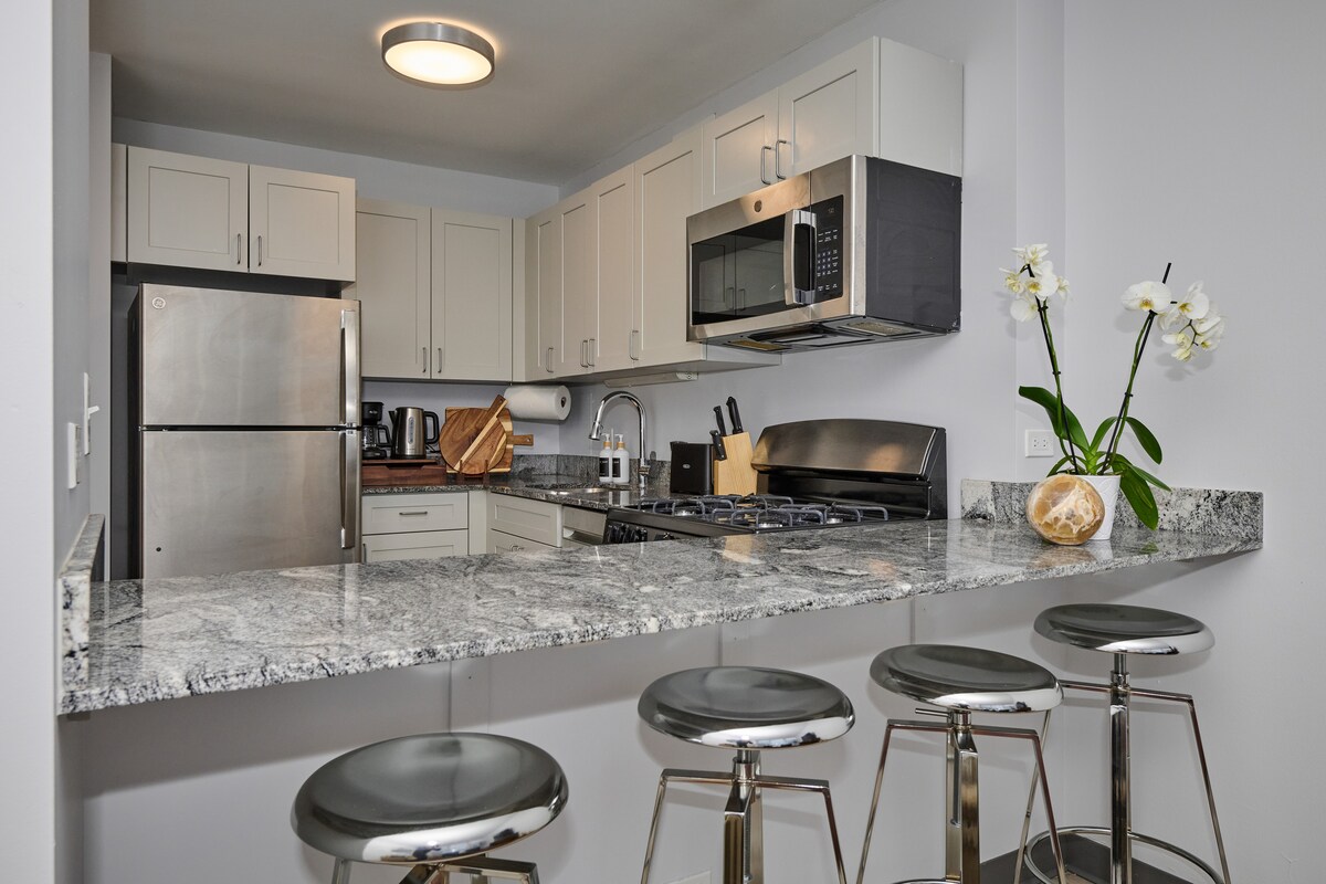 ¡Este elegante estudio en el corazón de Pilsen es el espacio perfecto para descansar y relajarse durante tu visita a la Ciudad Ventosa! Este animado vecindario siempre tiene algo que ofrecer a cualquier tipo de viajero y es un viaje rápido para ver la mayoría de los lugares emblemáticos de Chicago. ¡Camina fácilmente hasta el histórico Thalia Hall o conduce hasta el Loop en solo 5 minutos! Te encantarán los detalles atentos y la decoración moderna del departamento, así como el espacio principal luminoso y acogedor.