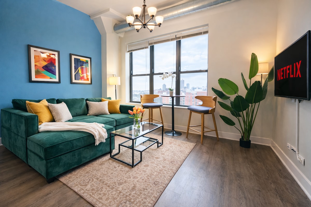 Disfruta de Chicago en nuestro moderno y espacioso loft de 1 dormitorio en el South Loop. ¡Ubicación céntrica para Grant Park, Soldier Field, Museum Campus, McCormick Place y mucho más! Nuestra ubicación tiene una puntuación de tránsito y paseo de 97, lo que proporciona un fácil acceso a todos los puntos de interés de tu itinerario. Disfruta de una encantadora luz natural, techos lujosamente altos y espacio para alojar a todo tu grupo. ¡Los huéspedes siempre se sorprenden gratamente por el tamaño del espacio y las comodidades modernas que ofrecemos!