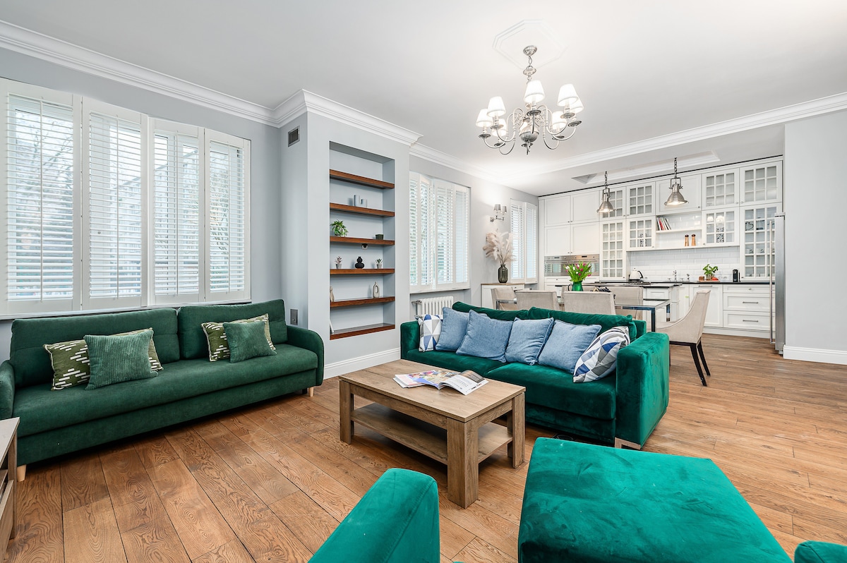 Apartamento céntrico y bonito en un edificio renovado del siglo XIX. Perfecto para los amantes del diseño y aquellos que quieran disfrutar de la energía creativa de la capital polaca. Rebosa encanto y tranquilidad, ofreciendo a los huéspedes un refugio sereno en el corazón de Varsovia. Nuestra filosofía es proponerte un hogar lejos de casa. Estamos más que emocionados y sentimos privilegiados de que nuestros huéspedes lo admitan y aprecien.