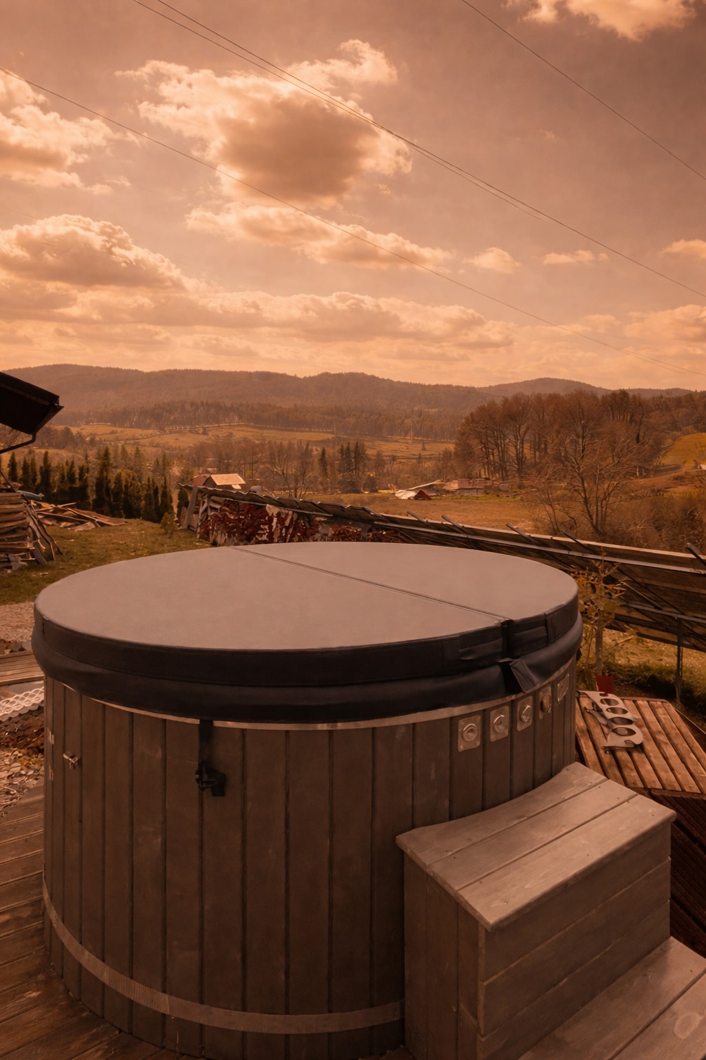Łosiówka: Domki z prywatną balią SPA w Bieszczadach Zapraszamy do Bystrego (k. Cisnej). Nasze domki (do 6 osób) to spokój i pełna wygoda. Atut: Elektryczna balia z jacuzzi! Bezobsługowa i prywatna – woda jest zawsze czysta, nagrzana i gotowa. Zapomnij o paleniu w piecu. Korzystanie jest bezpłatne i nielimitowane! Wnętrza: • Salon, aneks, łazienka. • Piętro: 2 sypialnie (w każdej łóżko 2+1). • Taras, murowany grill, TV. Bystre to oaza blisko szlaków. Odpocznij „na gotowe” – bez dymu i pracy!
