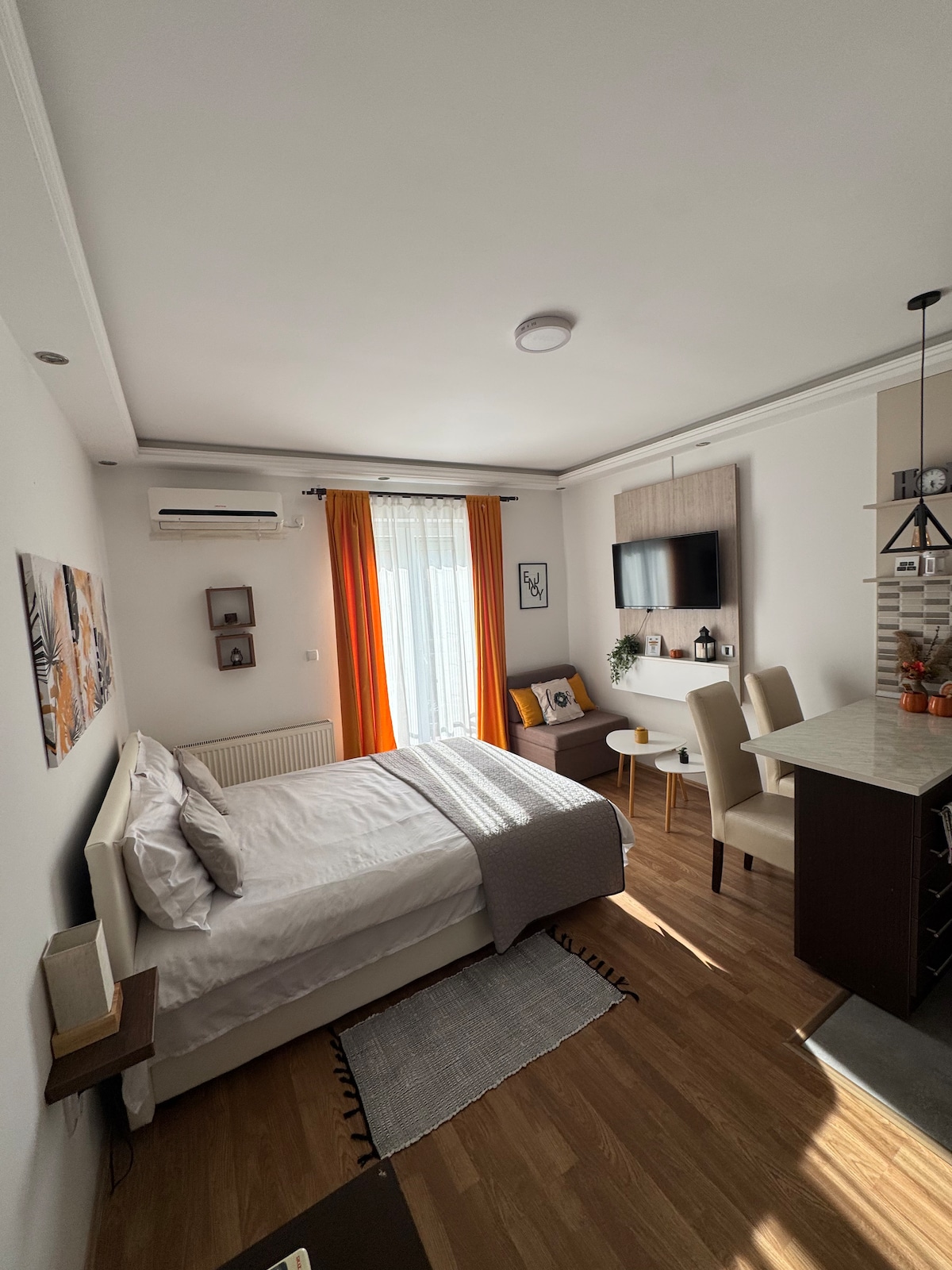 Siéntete como en casa en este acogedor estudio de inspiración bohemia en el corazón de Sombor. El apartamento está completamente amueblado y cuidadosamente diseñado, con una cómoda cama, una cocina bien equipada y un encantador balcón privado con una encantadora vista de la ciudad, perfecto para el café de la mañana o la relajación de la noche. A solo unos pasos de cafeterías, tiendas y lugares culturales locales, esta es una base ideal para explorar todo lo que Sombor tiene para ofrecer.