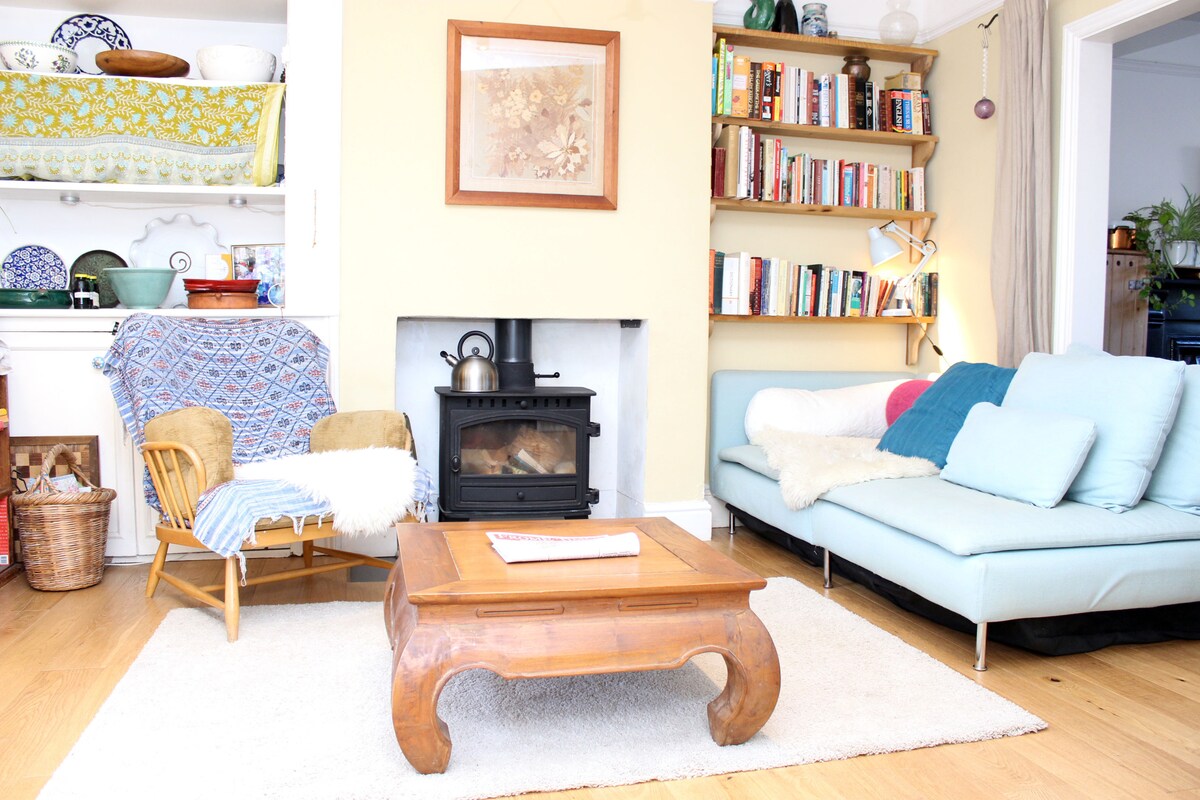 En una tranquila calle arbolada, el dormitorio da a nuestro peculiar jardín hacia el atardecer. A 10 minutos a pie del centro de la ciudad de Frome a través de Rodden Meadow y a 15 minutos a pie de la estación. Nuestro dormitorio de la planta baja tiene su propio baño con ducha separado con inodoro. Uso de nuestra sauna de leña por acuerdo. 10 £ Se admiten huéspedes de todo tipo de procedencia, incluidos LGBT y naturistas. El dormitorio está en la planta baja, pero hay escalones para llegar a la entrada principal y el pasillo es pequeño.